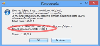 Επιλέγοντας το Checkbox «Έχει υποβληθεί έστω μία Δήλωση Ε5 στα 3 προηγούμενα Οικ. Έτη», το ποσό του Τέλους Επιτηδεύματος ανέρχεται σε 1000 €