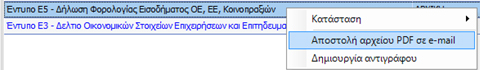 Με δεξί κλικ πάνω στο αποθηκευμένο έντυπο Ε5 θα επιλέξετε «Αποστολή αρχείου PDF σε e-mail»