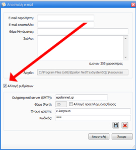 Έπειτα, θα συμπληρώσετε τα στοιχεία αποστολής e – mail, θα τσεκάρετε την επιλογή και θα ορίσετε τον smtpserver και τα στοιχεία «όνομαχρήστη» & «κωδικός» προκύπτουν από τη δημιουργία του λογαριασμού του χρήστη