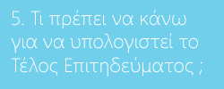 Για να υπολογίσετε το Τέλος Επιτηδεύματος θα πρέπει να μεταβείτε στην 5η καρτέλα και να ενεργοποιήσετε την αντίστοιχη παράμετρο Υπολογισμού.