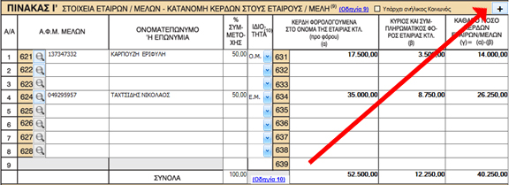 Σε περίπτωση που ο πίνακας αυτός δεν επαρκεί θα ενεργοποιήσετε το πλήκτρο και θα συμπληρώσετε τον Επιπρόσθετο Πίνακα, ώστε να μεταφερθούν τα σύνολα ως Συνημμένη Κατάσταση στον παρών πίνακα.