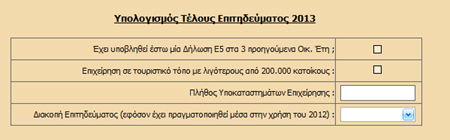 Επιλέγοντας το Checkbox «Επιχείρηση σε τουριστικό τόπο με λιγότερους από 200.000 κατοίκους» σε συνδυασμό με την 1 επιλογή, το ποσό του Τέλους Επιτηδεύματος ανέρχεται σε 800 €