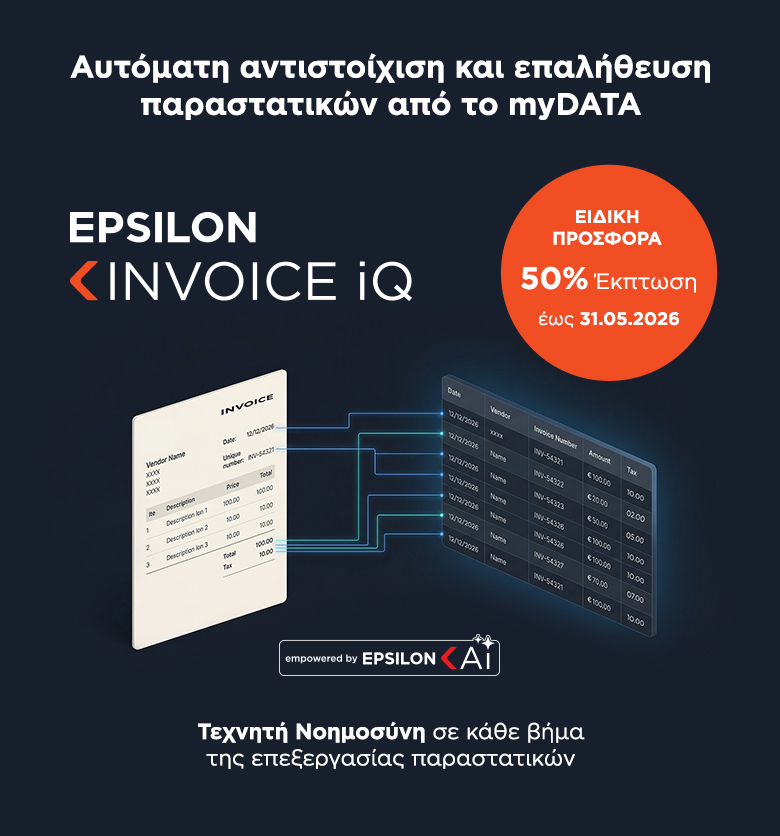 Αναβαθμίστε την παραγωγικότητα του λογιστικού σας γραφείου με το EPSILON INVOICE iQ, μέσα από αυτοματοποιημένες και αξιόπιστες διαδικασίες.